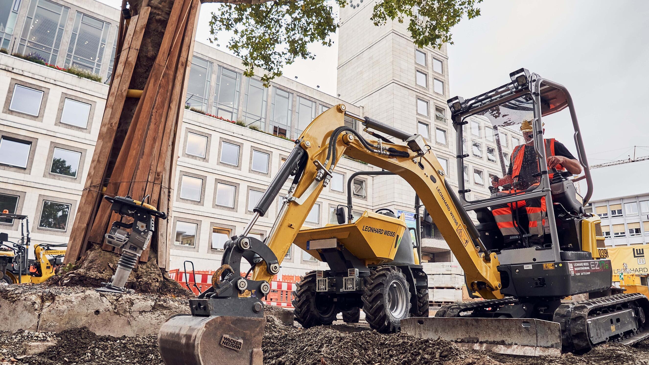 Stavební společnost LEONHARD WEISS v srdci Stuttgartu se nadchla pro bezemisní stavební stroje a zařízení od Wacker Neuson.