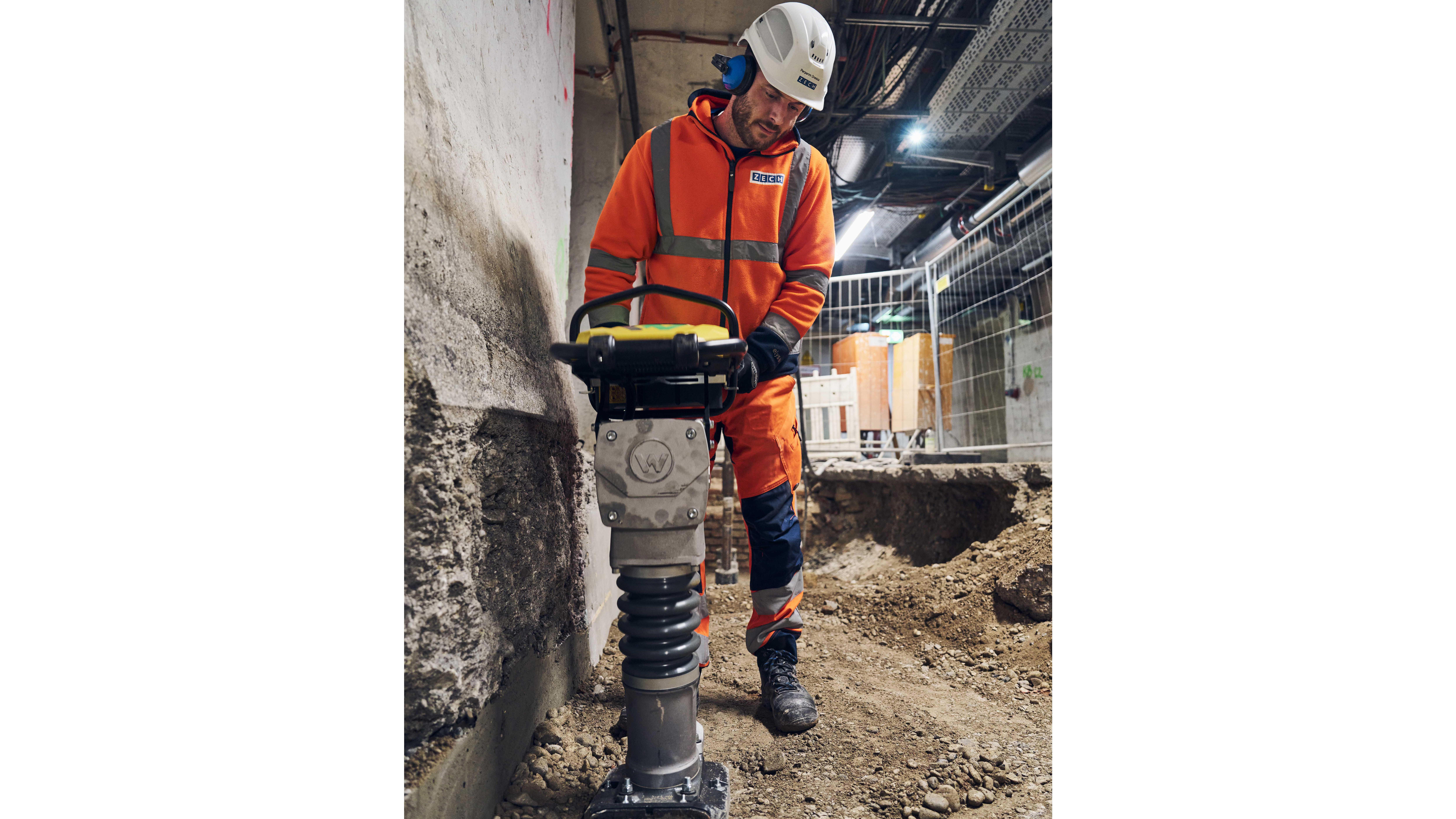 Ke zhutnění zeminy ve výkopu byl použit akumulátorový pěch AS62e a vibrační deska s reverzním pojezdem APU3050e. Uživatelská přívětivost i výkonnost během celého pracovního dne byly na této stavbě skutečně přesvědčivé. Jak akumulátorový pěch AS62e a vibrační deska APU3050e, tak i modulární akumulátorový ponorný vibrátor ACBe, který byl použit souběžně s hutněním betonu, jsou napájené baterií BatteryOne, kterou lze mezi jednotlivými výrobky snadno a rychle měnit.